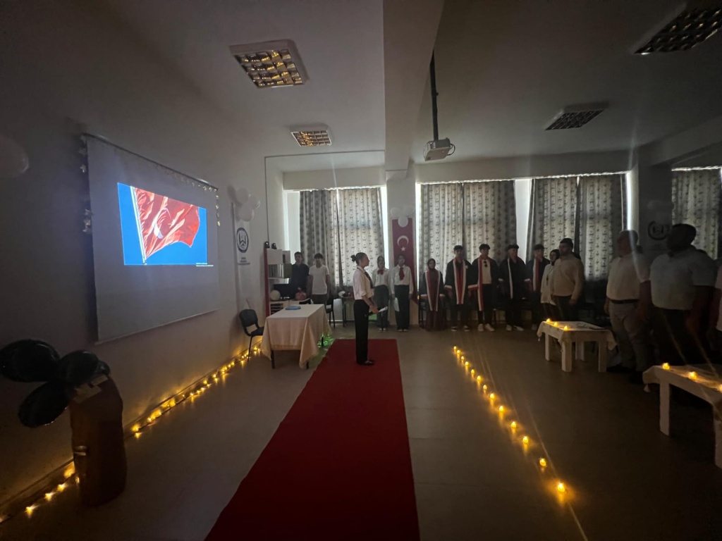 Okul Müdürümüz, öğrencilerin akademik başarılarının yanı sıra milli ve manevi değerlere bağlı bireyler olarak yetişmelerinin önemine vurgu yaptı. Bundan sonraki hayatlarında da aynı azimle yollarına devam etmeleri temennisinde bulundu.